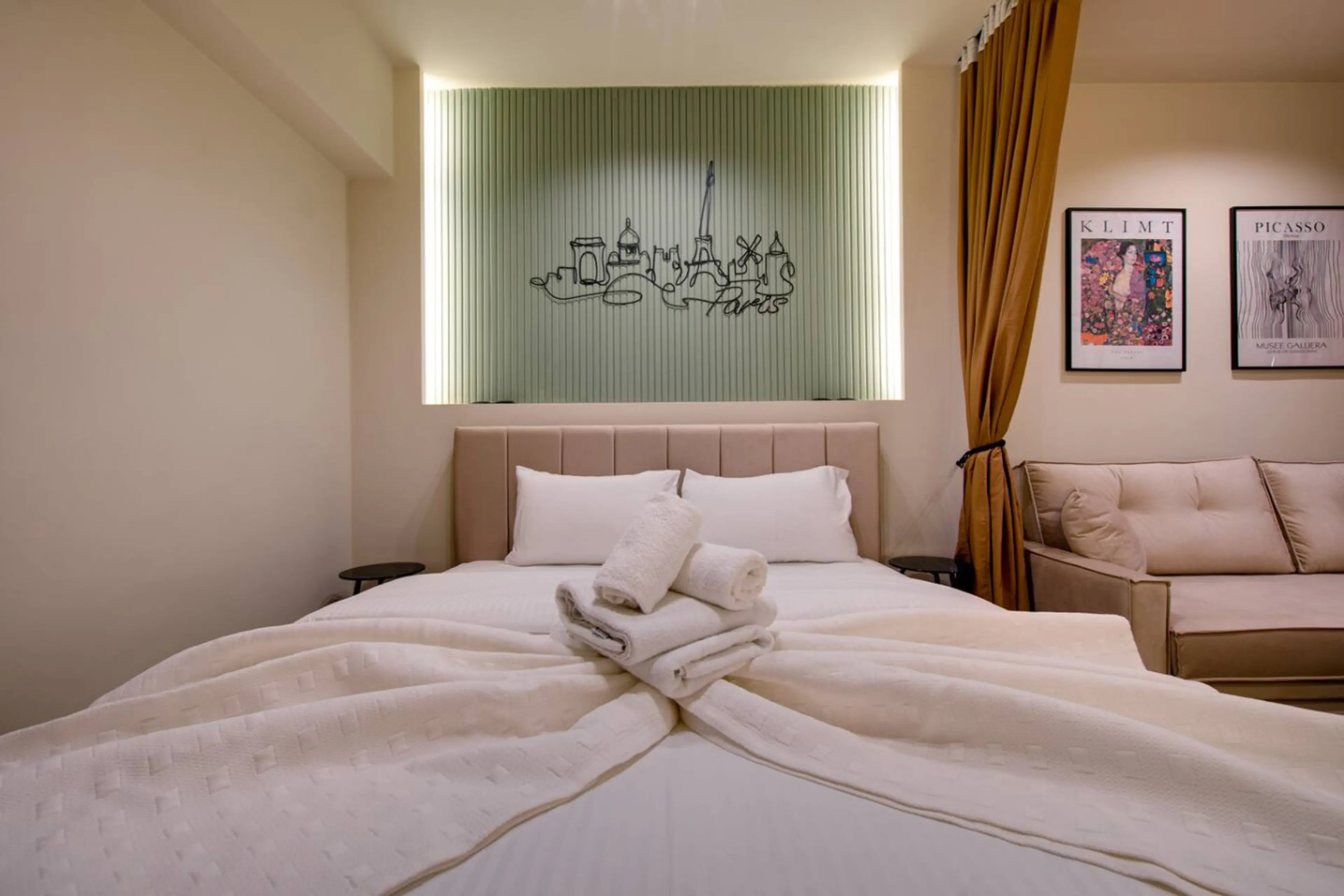 Experience city living in this modern, ground-floor apartment, beautifully decorated with a cozy, welcoming atmosphere. It features a comfortable double bed and a sofa bed for up to 4 guests, a fully equipped kitchen , and a living area all in one . Step outside to a charming small shared garden, i...